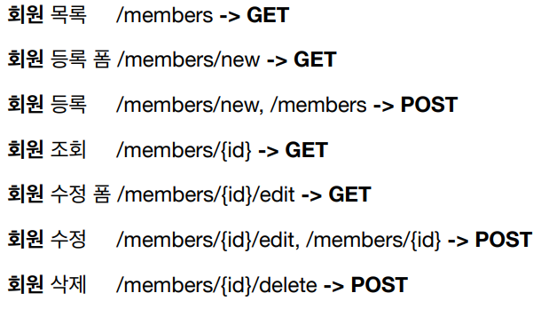 - POST์ /new, /edit, /delete๊ฐ control URI