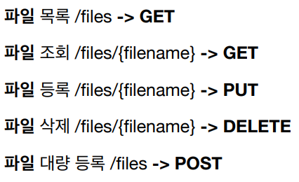 - ํด๋ผ์ด์ธํธ๊ฐ ๋ฆฌ์์ค URI๋ฅผ ์๊ณ ์์ด์ผ ํจ (/files/{filename} -> PUT)
